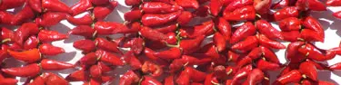 Chili powder or flakes can be ground from the dried chilies after a day in the drying machine. It has an orange to red color. It smells very pleasant, and we don’t even talk about the taste. Traditionally the Gorria chilies are air dried.